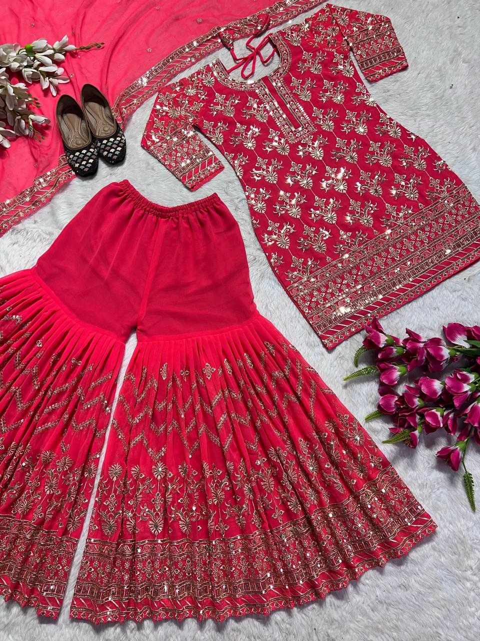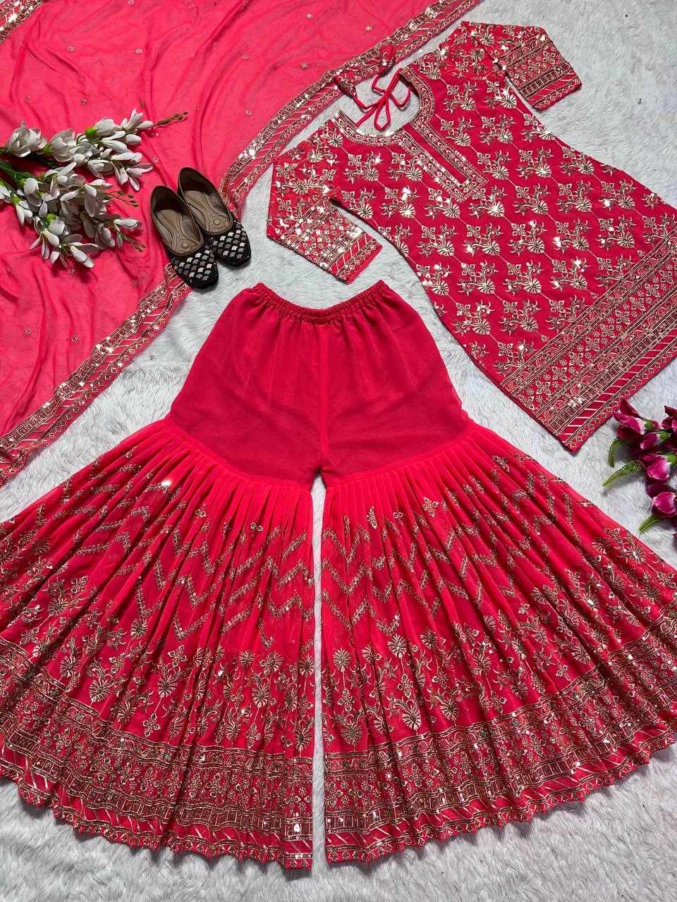 Plazzo Fabrics: Heavy Faux Georgette With 5mm Embroidery Sequence Fully Flair