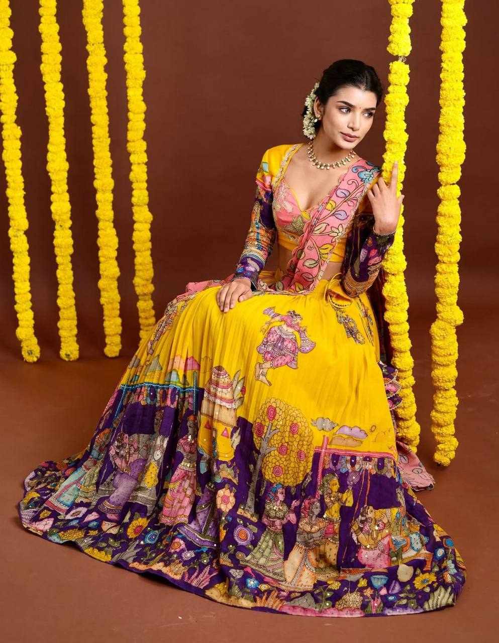 | Name : | PC 462 Yellow Kalamkari Lehenga |